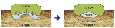 D-Box의 내부 트러스밴드가 구속효과를 높여 내부 토립자의 강도를 증가